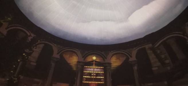 Unter dem Titel „Halloween im Planetarium“ hatten wir 2021 die Gelegenheit, drei unserer Geschichten als Live-Hörspiele im Nicolaus Copernicus-Planetarium in Nürnberg vorzutragen. Der besondere Clou daran war, dass wir die Technik des Planetariums nutzen konnten, wo die Grafiken von Thomas Kugelmeier in 360-Grad-Rundum-Projektionen an die Kuppel geworfen wurde, ein umwerfender Eindruck, der sich leider auf Fotos nicht recht reproduzieren lässt — aber auf jeden Fall ein Gewinn für die Zuschauer bzw. -hörer, sie so noch weiter in die Geschichten einbezogen werden: